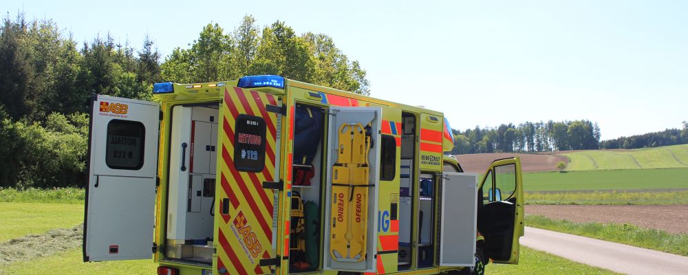Notarzteinsatzfahrzeug mit Rucksäcken